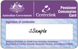 * Concession is limited to holders of the Centrelink Pensioner Concession Card (see right) and Student Concession card holders only