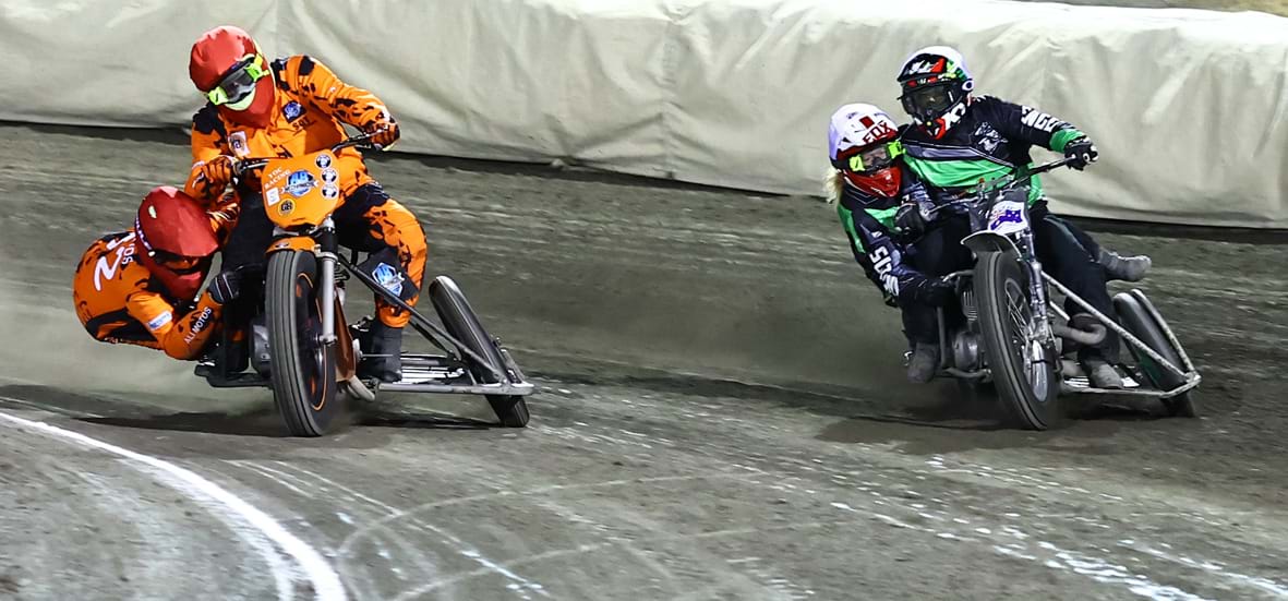 The Japanese Sidecar class saw some close racing between Aaron Silvy/Jaron Silvy, Wayne Lethbridge/Grantley Simounds and Peter Engels/Angela Macfarlane but Silvy was out after two heat wins and with Pieter Hoogland/Liam Sherwood also out, the final was a match race between Lethbridge and Engels. They were side-by-side for a couple of laps, with Engels on the outside, but when he tried to switch to the inside down the back straight he ran off the track, cutting the corner in turn three, leaving Lethbridge to an unchallenged win.