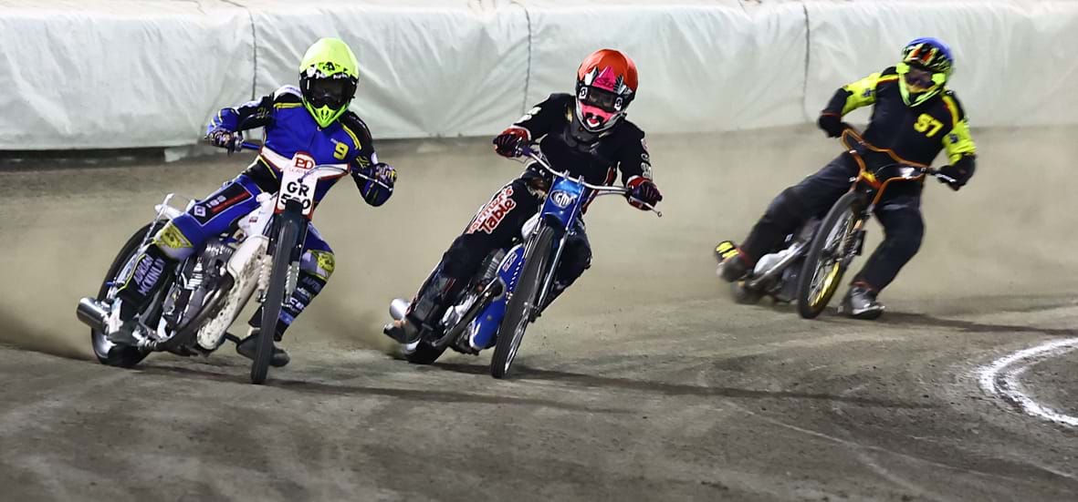Although competitor numbers were low they produced some close and willing racing — perhaps at times too willing for this level of racing — but thankfully everyone got through the meeting safely, and at the presentations the riders were full of praise for the track preparation by Seane Chapman and Adam Possingham.