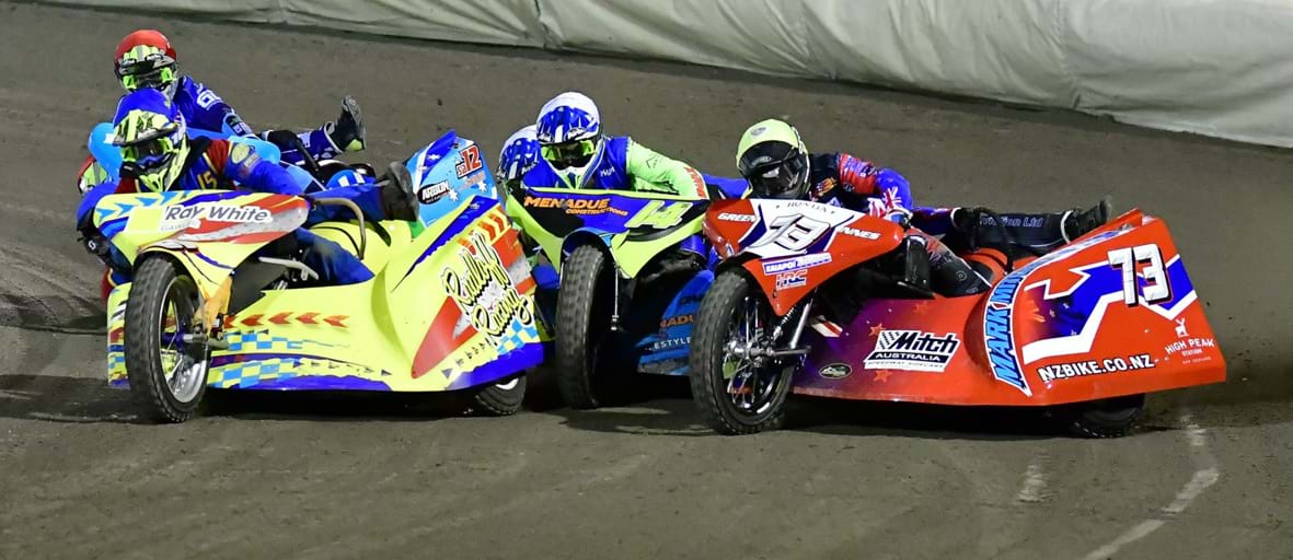 The standout duo in the Sidecar events was New Zealand duo Taylor Green and Callum Innes, who were making their Gillman debut. The night did not start well for the Kiwis when meeting favourites Justin Plaisted/Brian Anthony slowed in front of them after only a quarter-of-a-lap in their first race, and they ran into the back of them and rolled the bike.