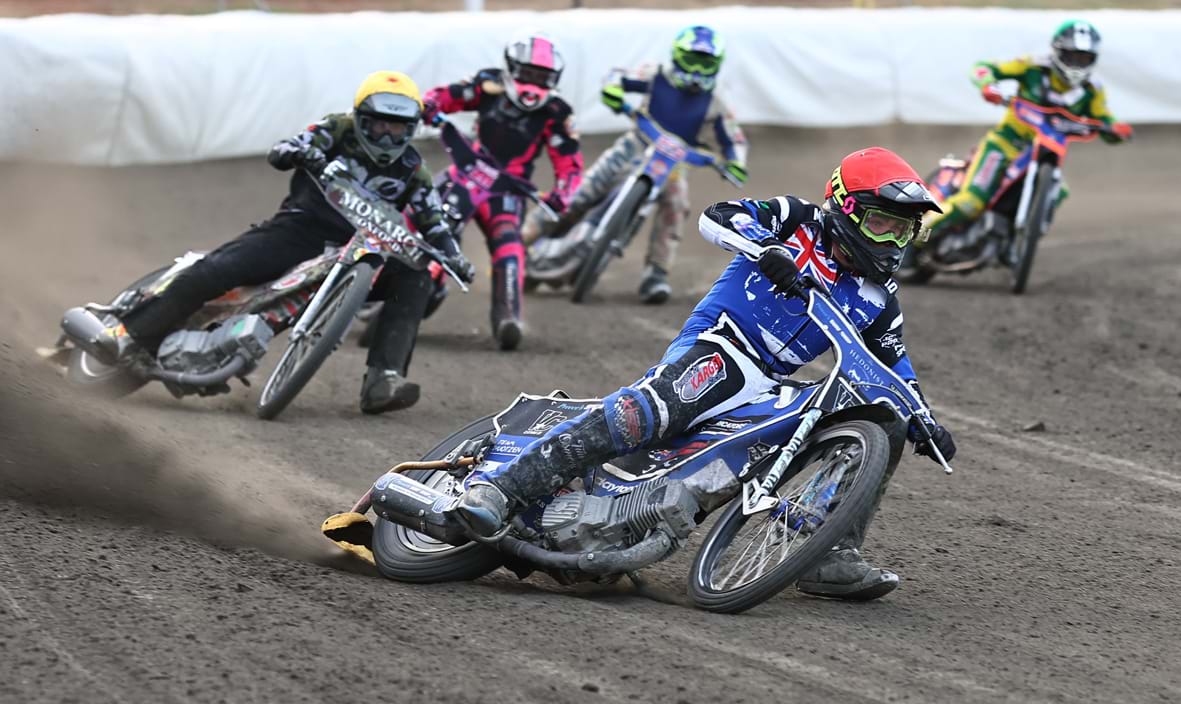 Fortunately May wasn’t injured in his crash on the speedway bike and was able to continue in the flat track class and top scored in the heats with an unbeaten 12 points. His toughest heat was heat nine in which he and Jake Mitchell were side by side for most of the race.