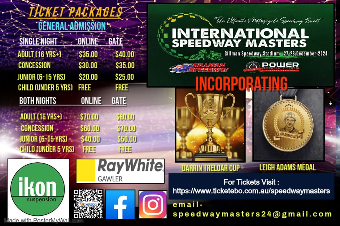 # Online Tickets: General Admission Tickets can be purchased at – www.ticketebo.com.au/speedwaymasters