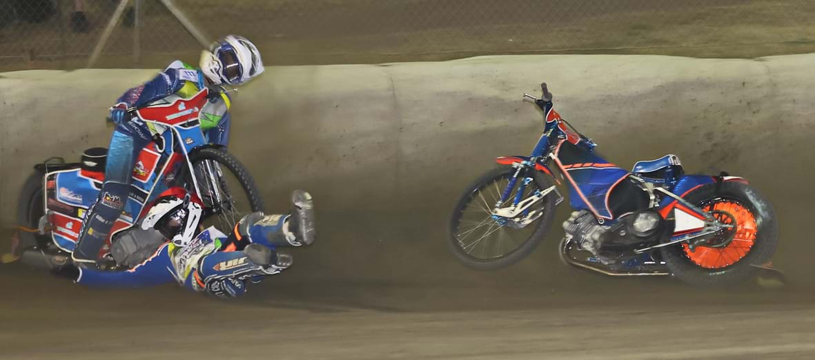 The second Semi-Final brought together Tungate, Sedgmen, Fricke and Masters and they were in that order out of turn two when Masters lifted, went wide and hit the fence on the back straight. He was pitched forward off the bike and landed heavily on his left shoulder, suffering muscle damage which looks like forcing him to withdraw from the other rounds of the championship. In the rerun without Masters, Tungate lifted slightly going into turn two and when he came down he cannoned into the side of Sedgmen and knocked him off. Sedgmen slid along the track and hit the fence back first near the pit gate. Tungate was excluded, and Fricke and Sedgmen went through the motions to earn their places in the final. It was a disappointing end for Tungate, who, of course, would have been straight into the final under the usual Gillman format of highest three scorers going direct to the final.