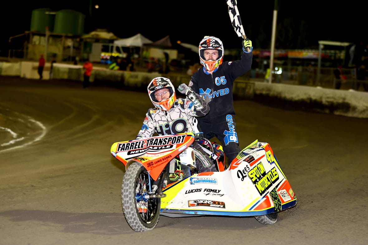 Justin Plaisted and Damian Egan won their first Bob White Sidecar Cup in an exciting final ride with defending cup holders Darrin Treloar and Blake Cox at Gillman speedway on Saturday night (23 March).