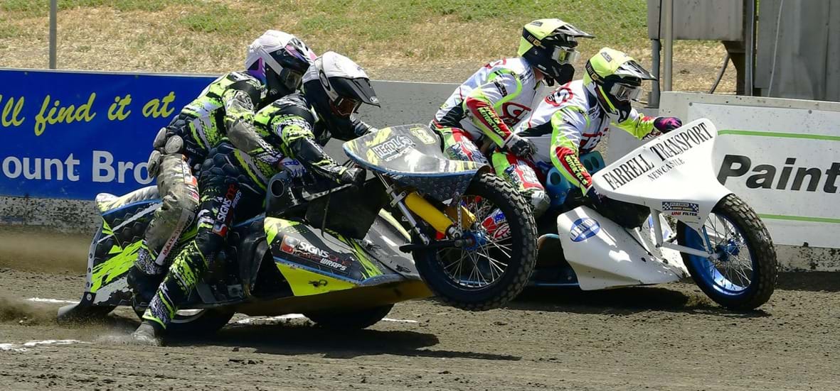 After their epic finish in the Safe Fire Electrical Gillman Sidecar Championship at the last meeting Trent Headland/Jaxon Rayner and Justin Plaisted/Brian Anthony return to Gillman Speedway on Saturday night (6 December) to face off again in the Paintmaster SA $2000 Gillman Sidecar Spectacular
