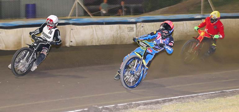 There was a major disappointment for Solo fans with Liam May (shoulder injury), Brayden McGuinness (illness), Steve Graetz and Cooper Riordan all out before the meeting started. In their absence Fraser Bowes won five of the six races in the revamped programme. His only loss was in the fifth heat in which he was relegated to third place by Jake Turner and Arlo Bugeja who crossed the line side-by-side with Bugeja getting the judge’s verdict.