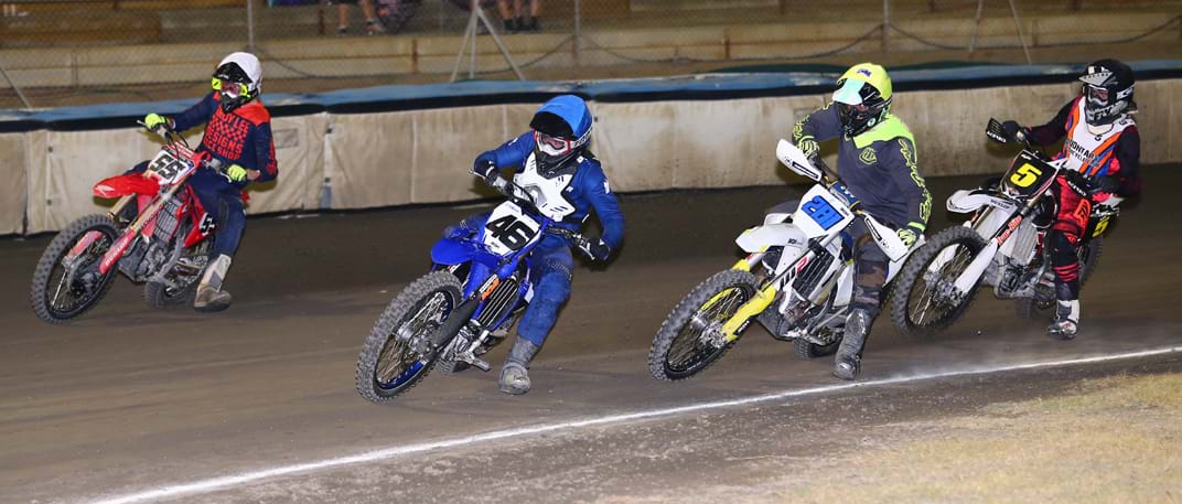 At the other end of the experience scale, 16-year-old Kyle Machin was also unbeaten in the Solo Flat Track races, while Fraser Bowes came up one short in the 500cc Solos, winning four of the five heats and the final.