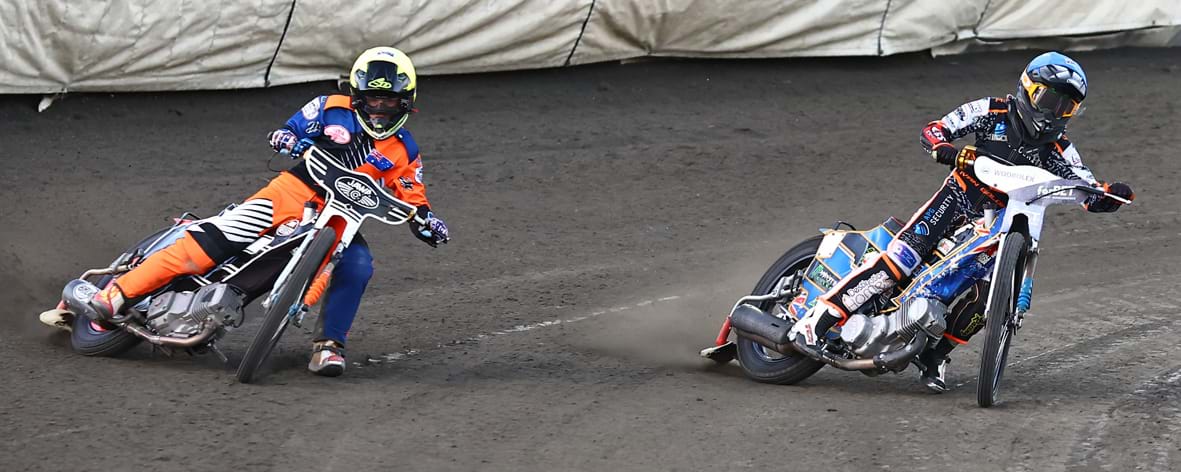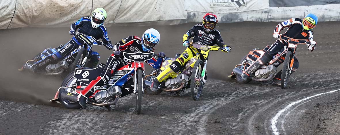 One of the most dominant was Jack Morrison, who went through the card unbeaten in the Division 1 Solo races, and won all of his races by a comfortable margin. There was nothing much between the other four, Dayle Wood, Matt Marson, Harry Sadler and Patrick Hamilton, for the minor placings though and one of the best races was heat four when Marson, Hamilton and Sadler were wheel-to-wheel for the whole race. The final points (behind Morrison on 12) saw Wood (with a fall in one ride) and Marson on 7 points, Hamilton on 6 and Sadler on 4.