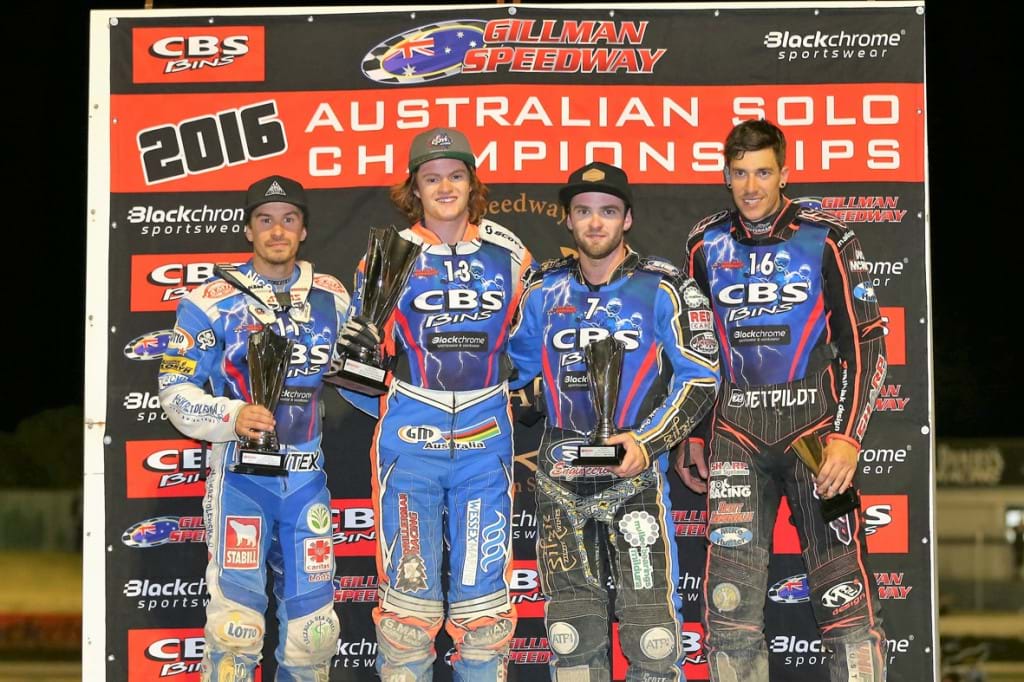 The 2016 Australian Speedway Solo Championship is set for a blockbuster finish in Mildura on Sunday night after last night’s CBS Bins Round 3 at Adelaide’s Gillman Speedway saw the third different winner, and third different points leader, after a thrilling night’s racing which saw all the top runners dipping in and out of favouritism as the night went on...