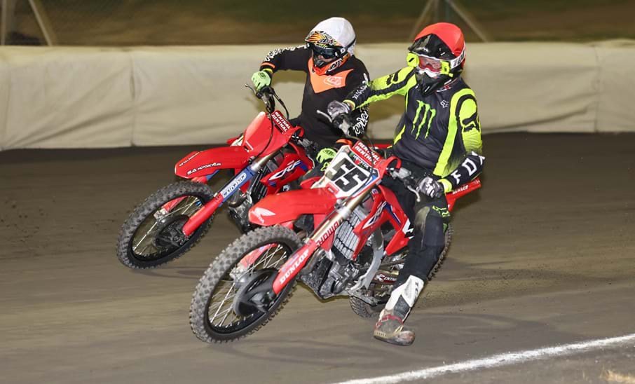 Josh Pascoe and Greg Black won the two bike consolation race from Byron Mordaunt/William Lepoidevin, but it would have been little “consolation” to Pascoe who should have been in the final. He had two wins and a second on the night but only finished with 3 points after twice being excluded for going infield.