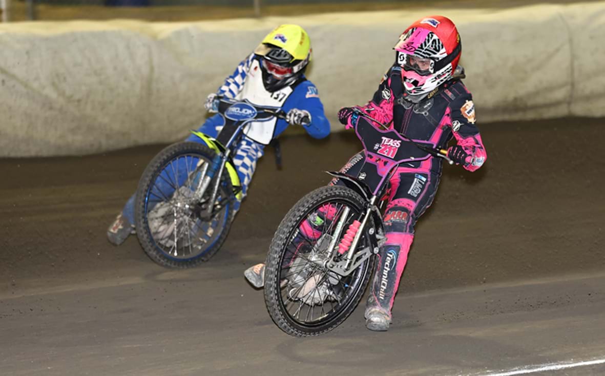 The opening meeting of the 27th Gillman Speedway summer season has been run and won, and the winners of the finals in each class were Fraser Bowes (Solos), Harry Sadler (250cc Solos), Roy Stout (Flat Track Solos), Kym Menadue/Shane Dolan (Sidecars) and Riley Stout (125cc Solos).