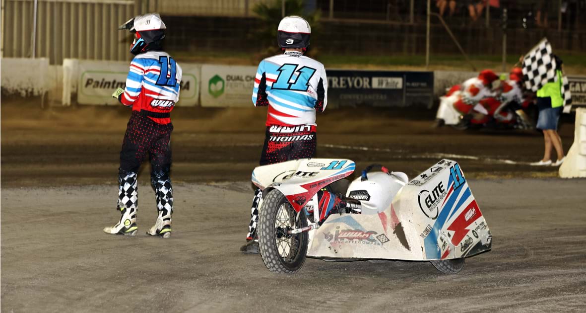 As predicted the sixth annual Bowes Family Sidecar Cup saw a sixth different winner at Gillman Speedway on Saturday night (7 February), when veteran Mildura rider Byren Gates, and local passenger Damian Egan (celebrating his 30th birthday) led all the way in the final.