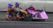 In the final, Pascoe/Knights won the start but were too slow into turn one and Gates/Egan went under them and Adams/Pascoe around them. Gates and Adams were side by side into turn two, and for a moment it looked as if the defending Cup holder, Adams, who had earlier inflicted Gates’ only loss in the heats, was going to take the lead but he had to take a high line and Pascoe got under him down the back straight and into turn three. Adams then went wide in turn four which also allowed Silvy under him. He looked to have some bike trouble and he retired on the next lap with what was explained as a loose kill switch connection. A disappointing end for him but nevertheless a good showing in what was his first appearance of the season after making the trip over from Tasmania where he now lives and works as a paramedic. With Adams/Pascoe out, Gates/Egan were unchallenged for the rest if the race but Pascoe/Knights and Silvy/Zaworski had an exciting tussle for second place, exchanging places several times before Pascoe/Knights were a clear second on the last lap only to go far too wide in the last turn, and Silvy/Zaworski got under them on the run to the line to take second by half a bike length, or 0.064 seconds by the transponder times.