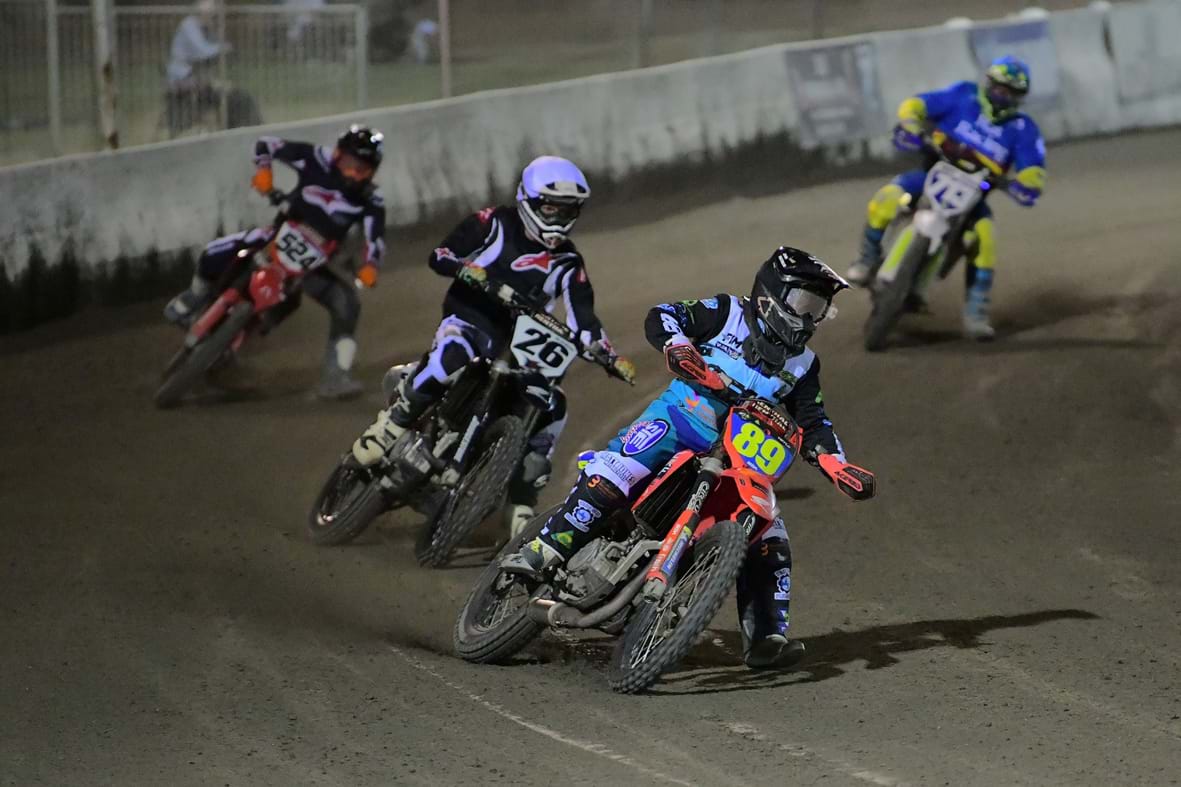 The main support class was the Flat Track Solo handicap races, with the crowd showing much more interest than usual, wondering if it would be the backmarker Harry Sadler, from 60 metres, or second backmarker Tayla Street, 30 metres, who would come out on top and it was Tayla Street. Sadler caught her on the last corner in the first heat, then Street won the next three, before Sadler came forward to 50 metres for the final heat, which Street won by 0.134 seconds. Newcomer John Blenkin took third place in all five heats after some close racing with fellow frontmakers Greg Laanekorb, Con Twist, and Matt Paterson.