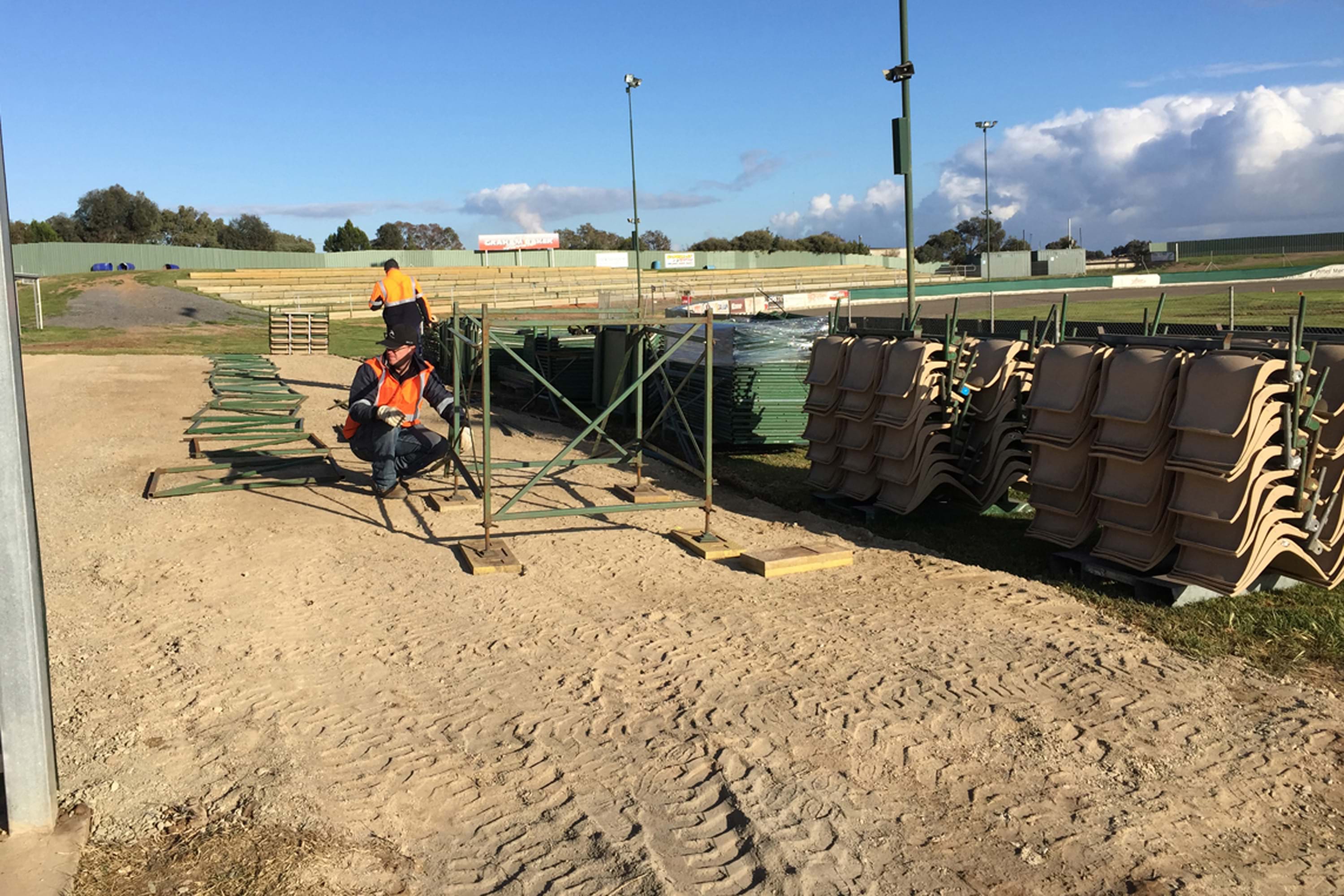During the winter of 2015 a new wind-break fence was erected along the top of the northern and eastern spectator viewing mounds, meaning the entire spectator area is now protected from the wind, and a 216 seat grandstand was erected on the back straight spectator area. This area had always been left flat while building up the mounds and terracing in the other spectator areas because it was always intended to put a grandstand there.