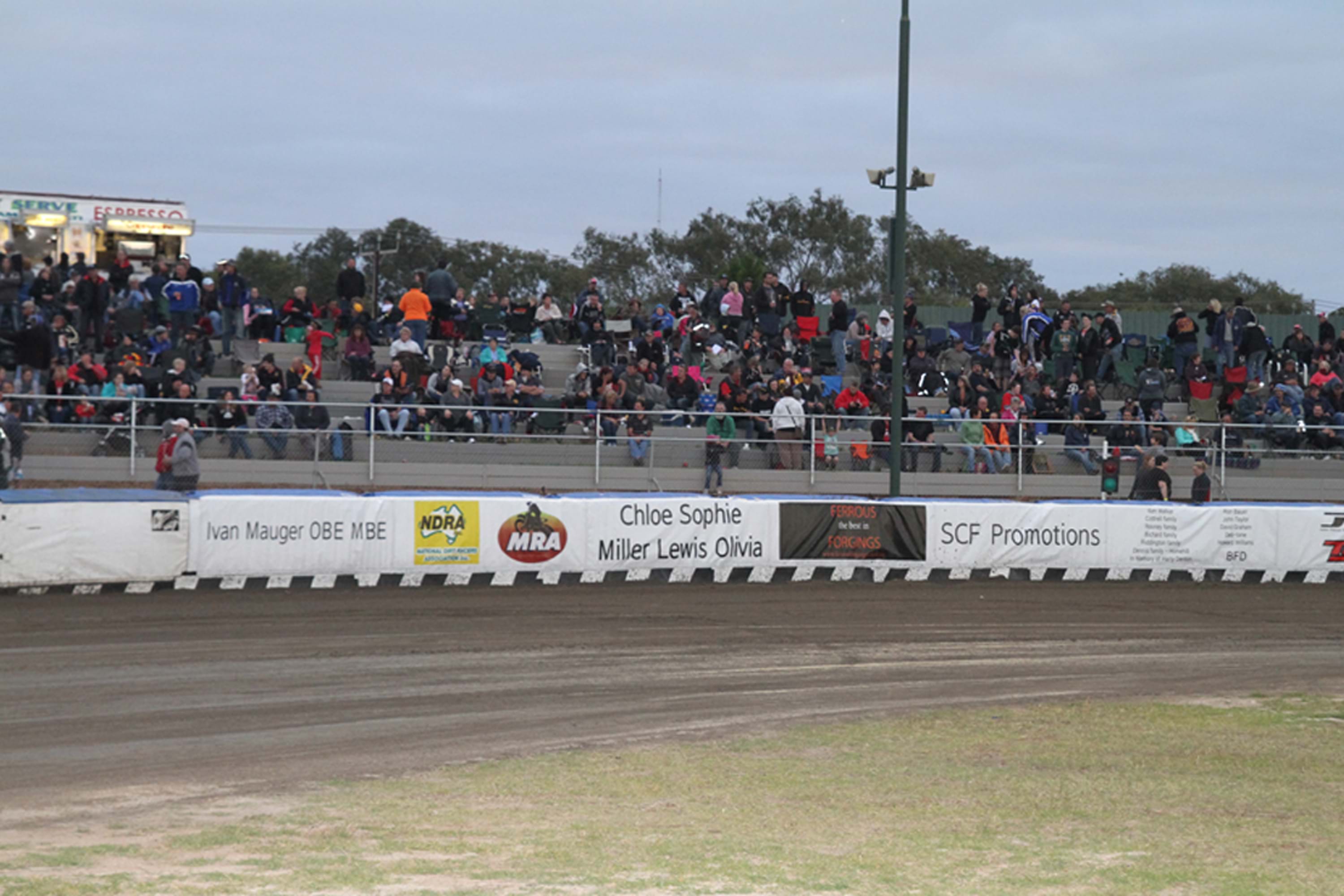 Prior to the 2009/10 season the wind-break fence was erected along the top of the western mound, and more canteens were built on both sides of the stadium to cater for the bigger crowds attracted to the major event nights such as the Australian Championship.