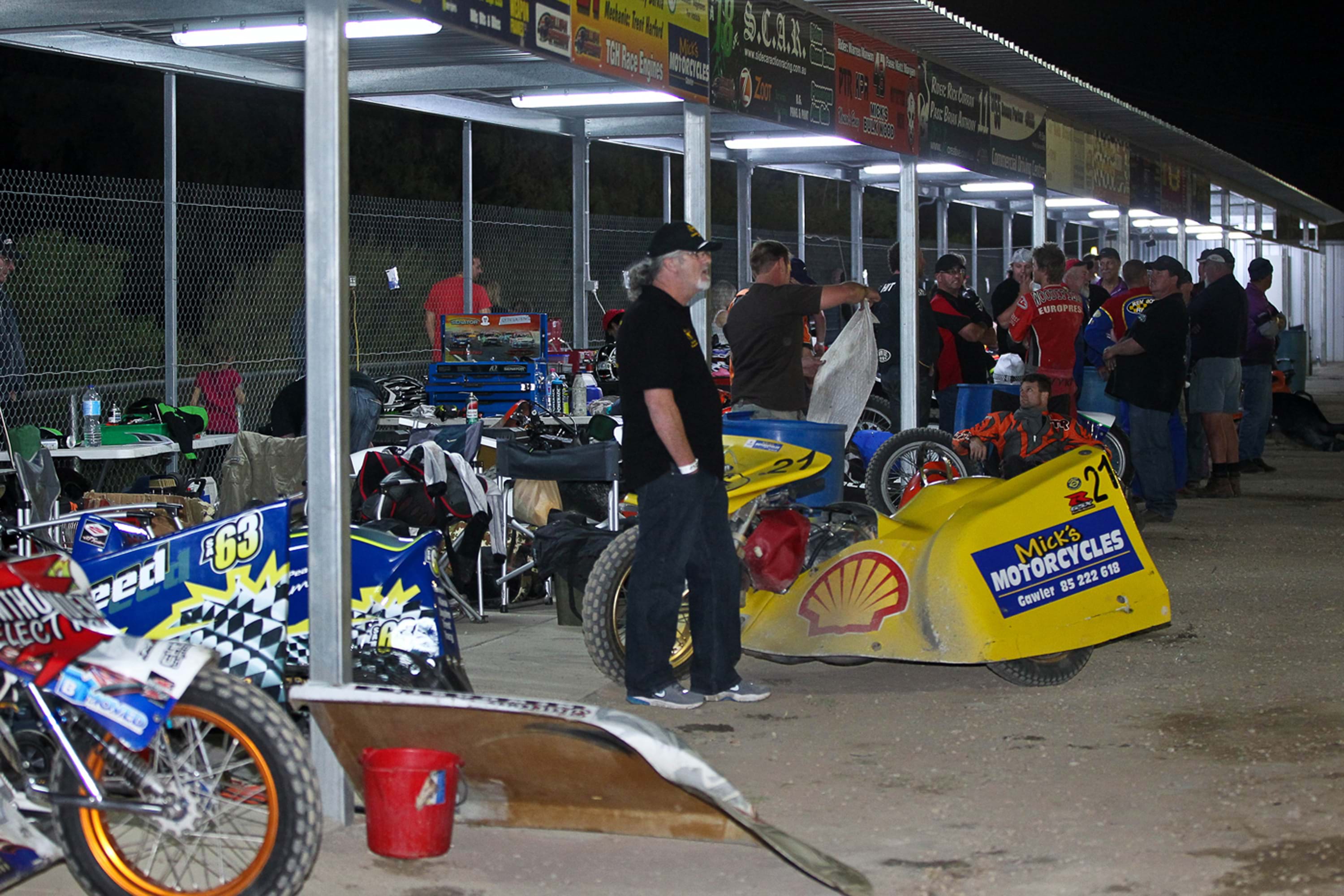 With the 2011 projects – the terracing of the western mound and the improved canteens – aimed at improving spectator comfort, attention switched more to the riders in the winter of 2012 with the construction of covered pit bays. With some financial assistance from a State Government Grant, granted in recognition of Gillman Speedway’s contribution to the sporting fabric of Port Adelaide, 91 metres of covered bays were built along the back boundary of the pits, each bay complete with lights, power and compressed air. And they were built in such a way that the public is still able to view the riders from a path which runs behind the pits. Other improvements included a new ticket box at the main gate and the introduction of electronic tills.